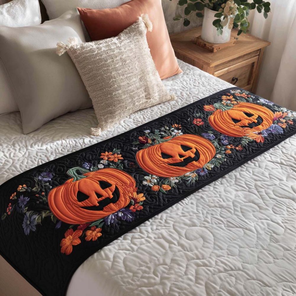 dark harvest bed runner,autumn bed runner,quilted fall runner,harvest decor,foliage bed scarf,rustic bedding accent,seasonal bed runner,decorative quilted runner