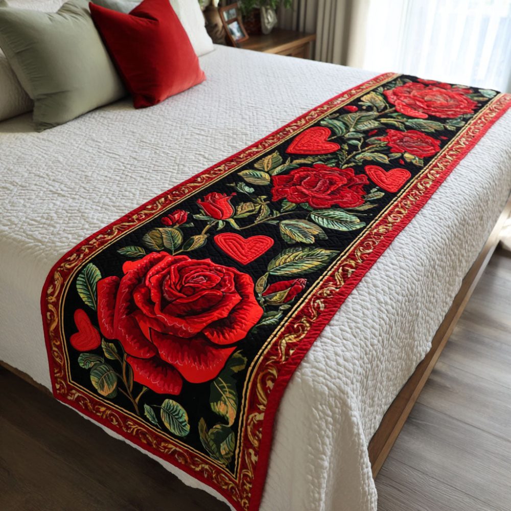 Deep Blossom Quilted Bed Scarf — Vibrant Floral Decorative Runner For Garden-Inspired Bedrooms, Colorful Layering, Machine Washable