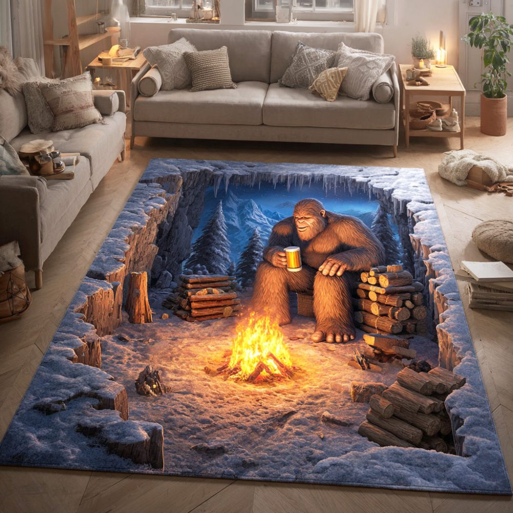 Deepwood Watcher Forest Area Rug — Majestic Woodland Bear Silhouette, Plush Rustic Accent Rug For Cabin Entryway & Living Room