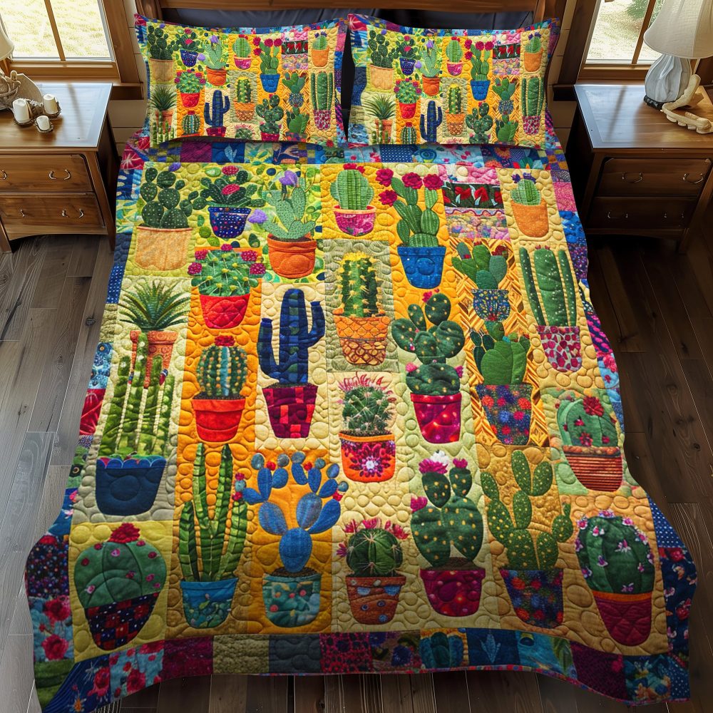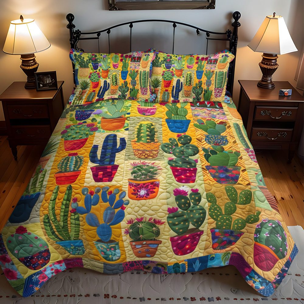 Desert Bloom Cactus 3-Piece Quilted Bedding Set