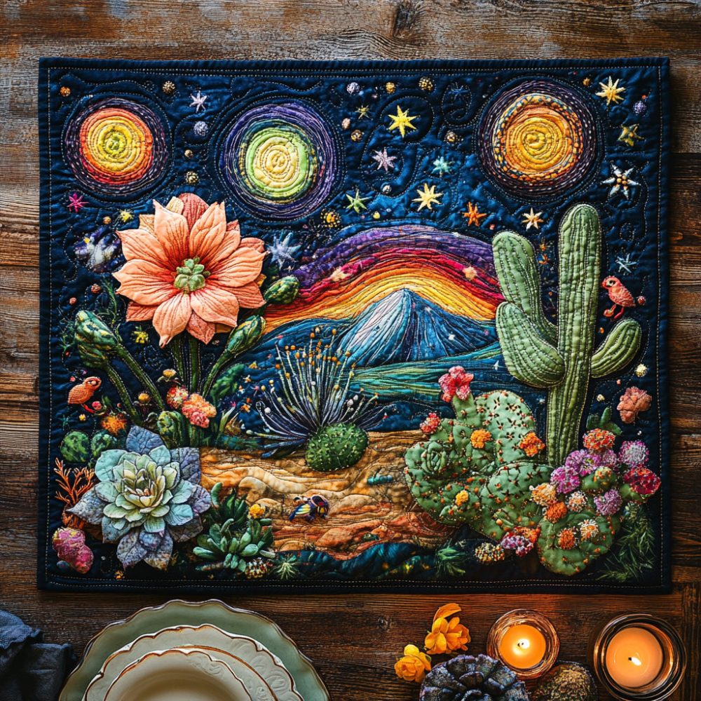 desert bloom placemat, cactus flower placemat, southwestern quilted placemat, washable table mat, insulated placemat, floral desert decor