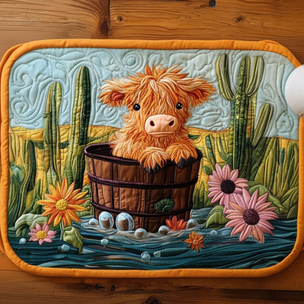 desert cow placemat, bucket cow placemat, quilted placemat, southwestern table decor, cotton placemat, durable table protector, machine washable