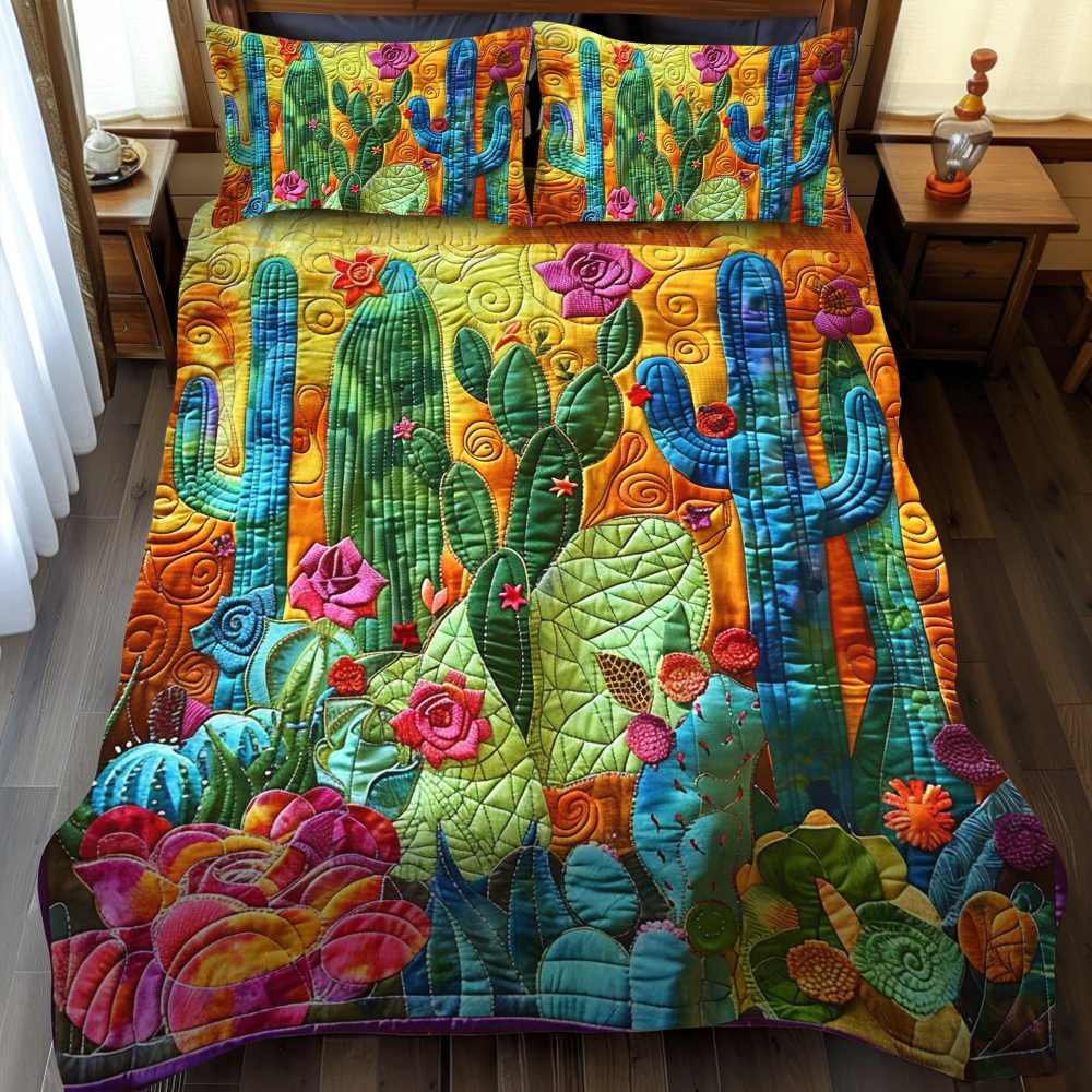 Desert Dreamscape Cactus 3-Piece Quilted Bedding Set