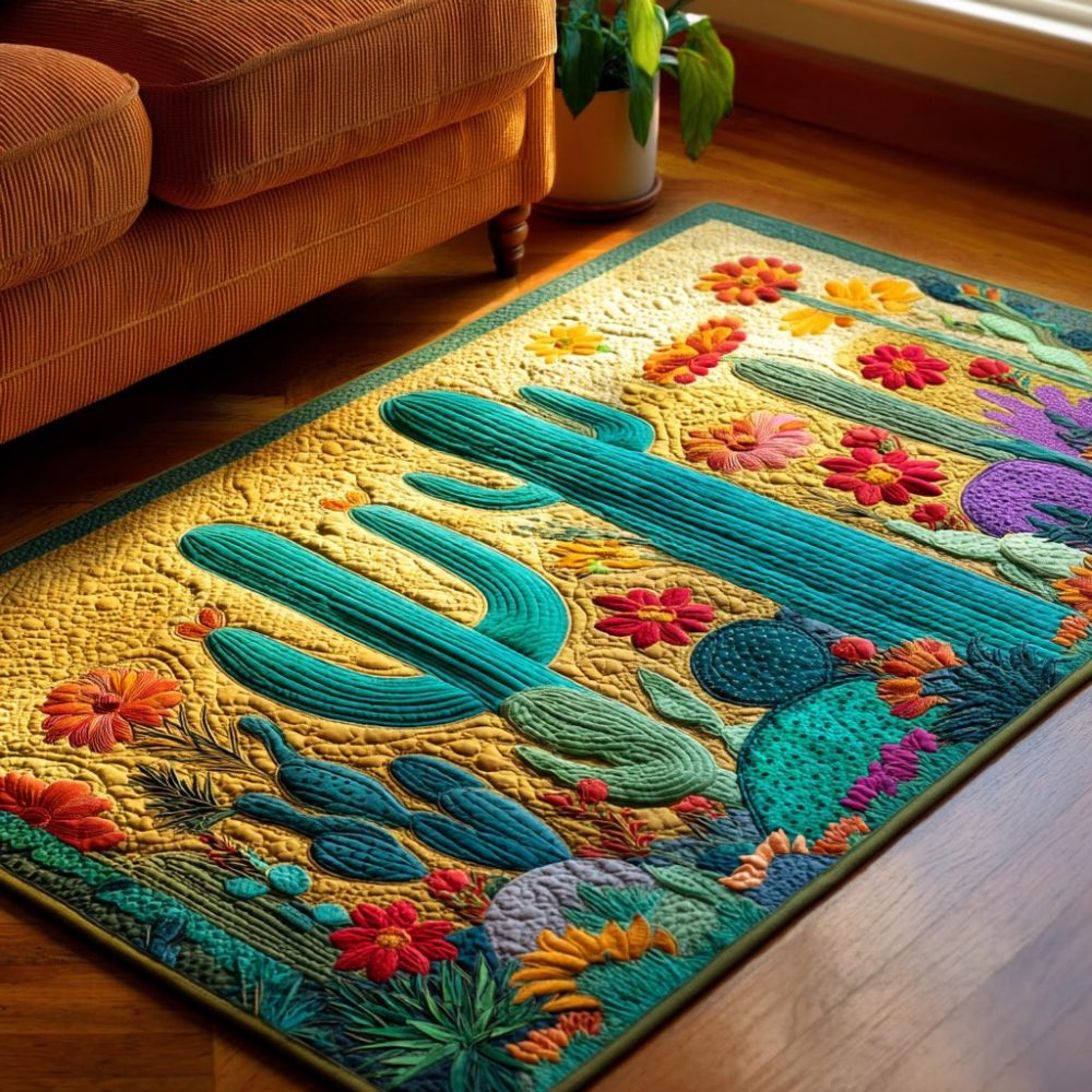 cactus area rug, southwestern rug, desert sunset rug, low-pile accent rug, living room rug, bedroom rug, durable washable rug, boho rug, nursery rug