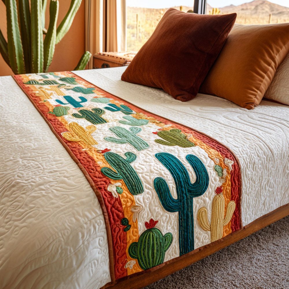 Desert Vista Charm Quilted Bed Runner – Rustic Southwestern Accent Throw For Bed & Lounge , Durable Cotton, Reversible Style