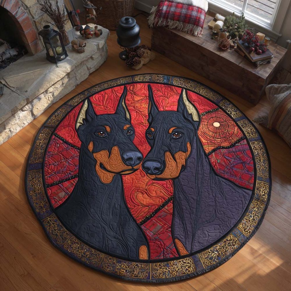 Doberman Yuletide Duo Quilted Round Mat