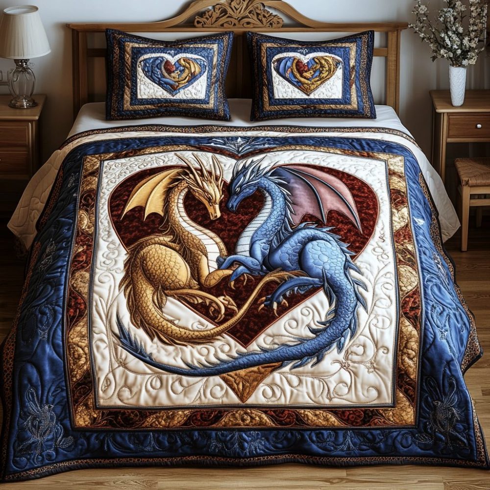 Dragon Couple 3-Piece Quilted Bedding Set
