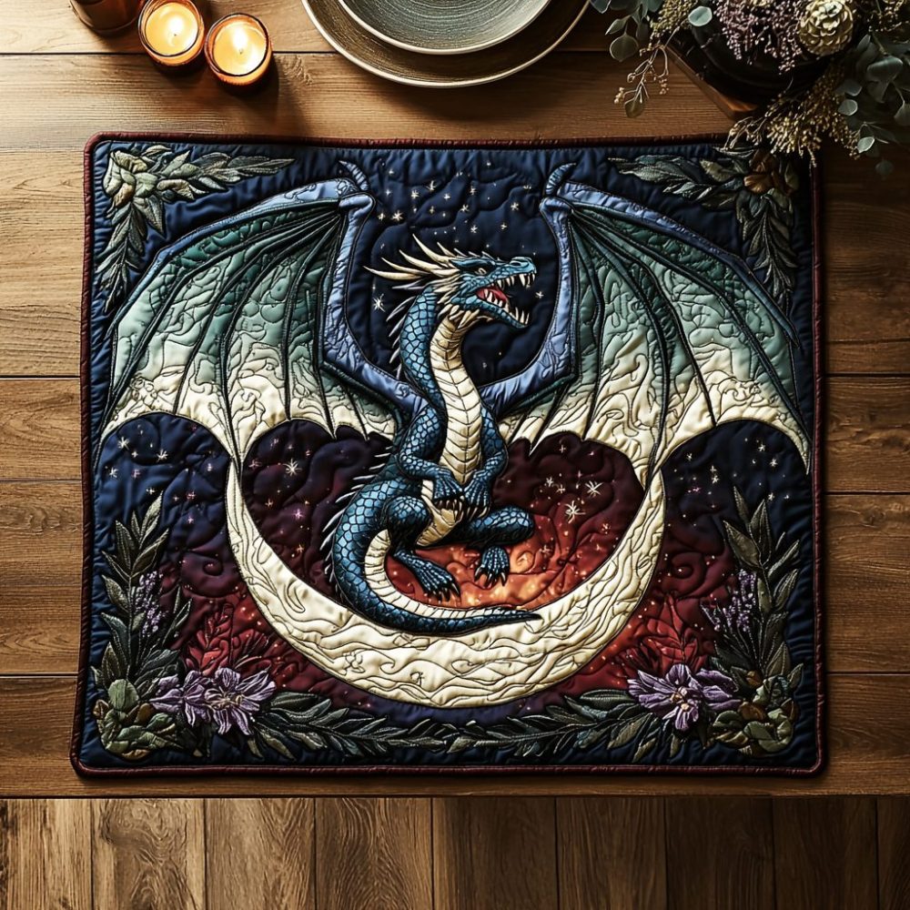 dragon flight placemat,quilted dining mat,vibrant placemat,table decoration,dining table accessory,machine washable,unique gift,dragon design