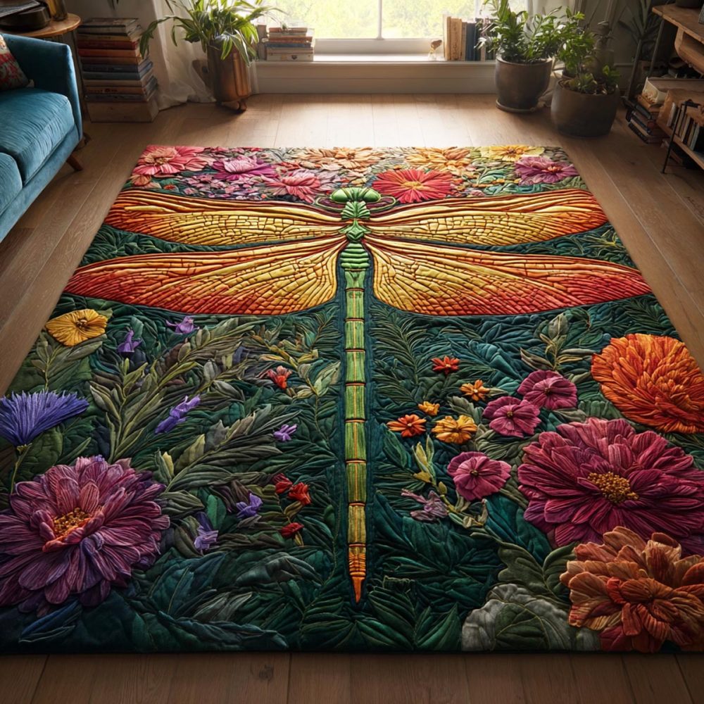 Dragonfly Calm Floral Area Rug — Serene Garden Motif, Soft Plush Pile, Fade-Resistant Print For Living Room, Bedroom & Nursery