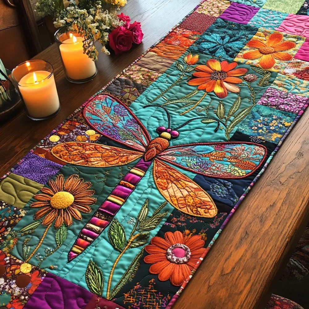 Dragonfly Dance Quilted Table Runner