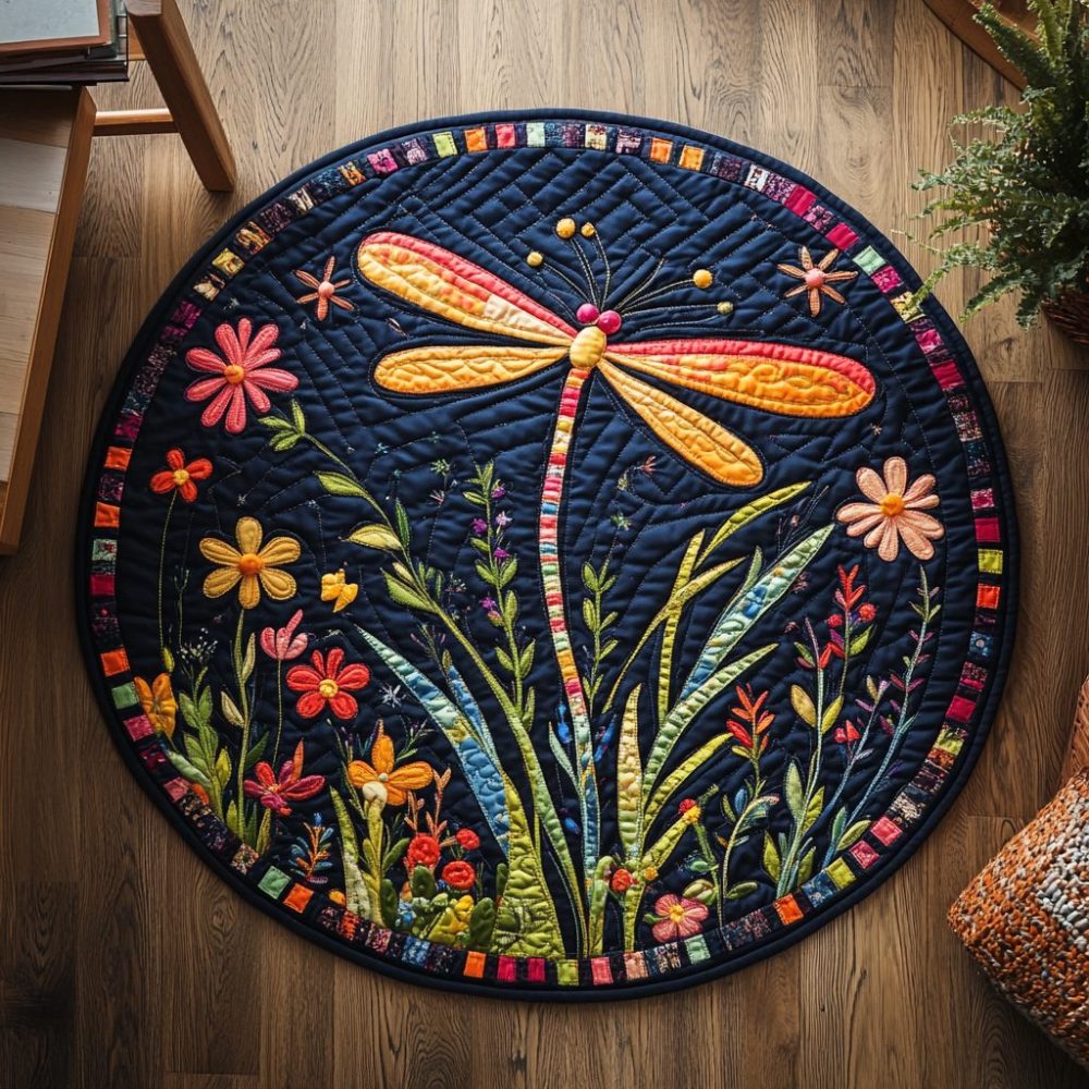 Dragonfly Dusk Quilted Round Mat