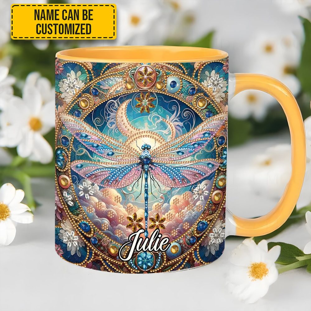 Dragonfly & Flowers – Personalized Dragonfly Accent Mug