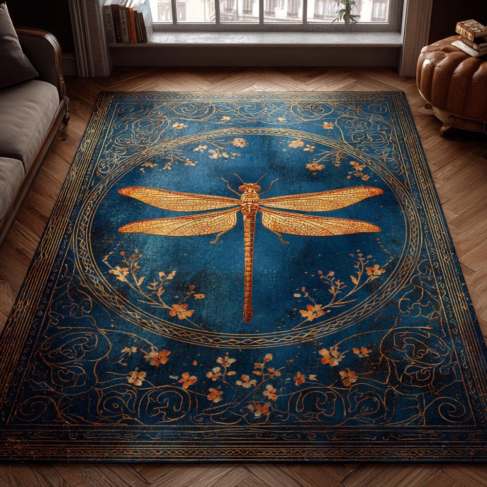 Dragonfly Glow Nightscape Area Rug — Radiant Accent Rug With Glowing Dragonfly Motif, Durable Indoor Rug For Bedrooms & Ambient Spaces