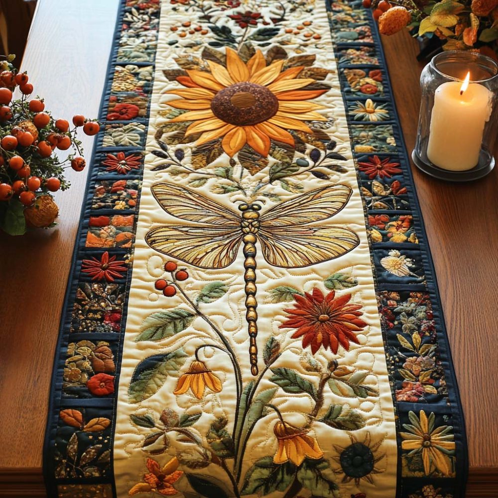 Dragonfly Petals Quilted Table Runner
