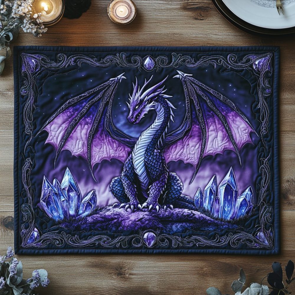 dragonheart placemat, dragon emblem placemat, quilted fantasy placemat, heat-resistant placemat, heavy-duty placemat, washable table mat