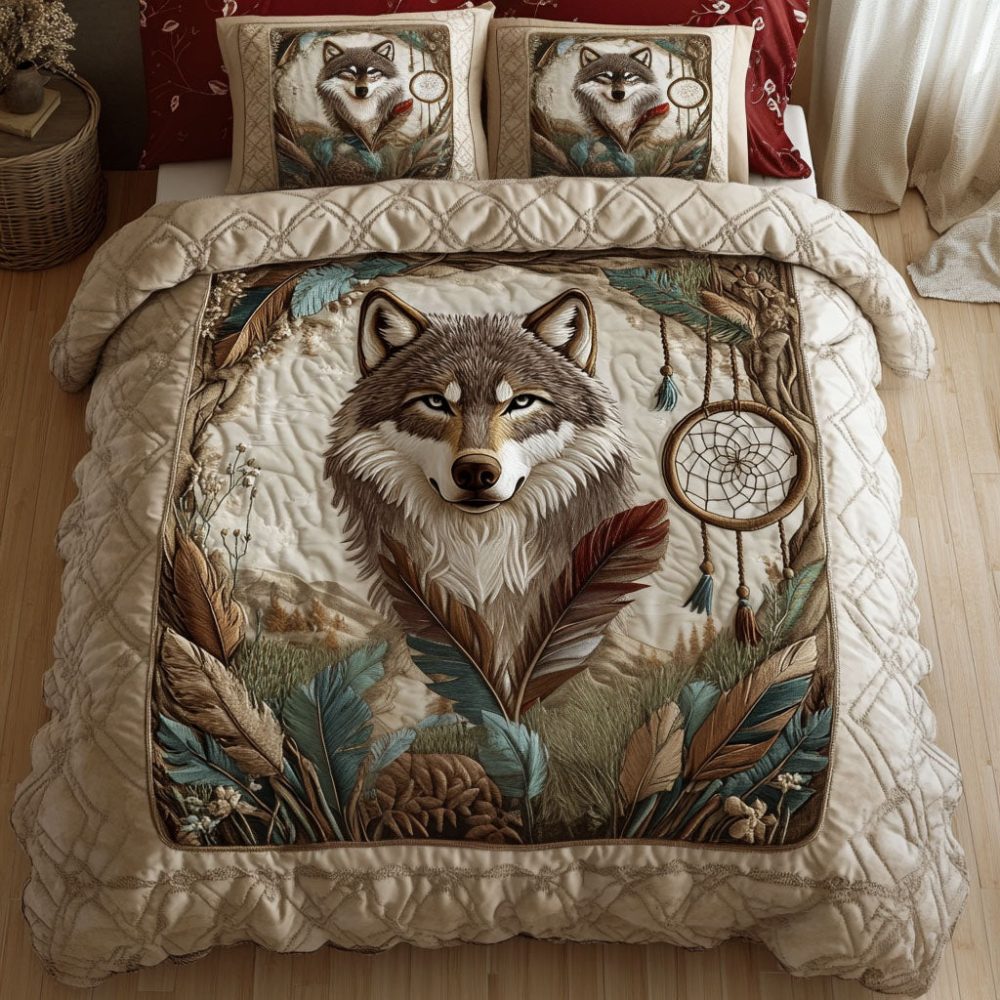 Dreamcatcher Wolf 3-Piece Quilted Bedding Set