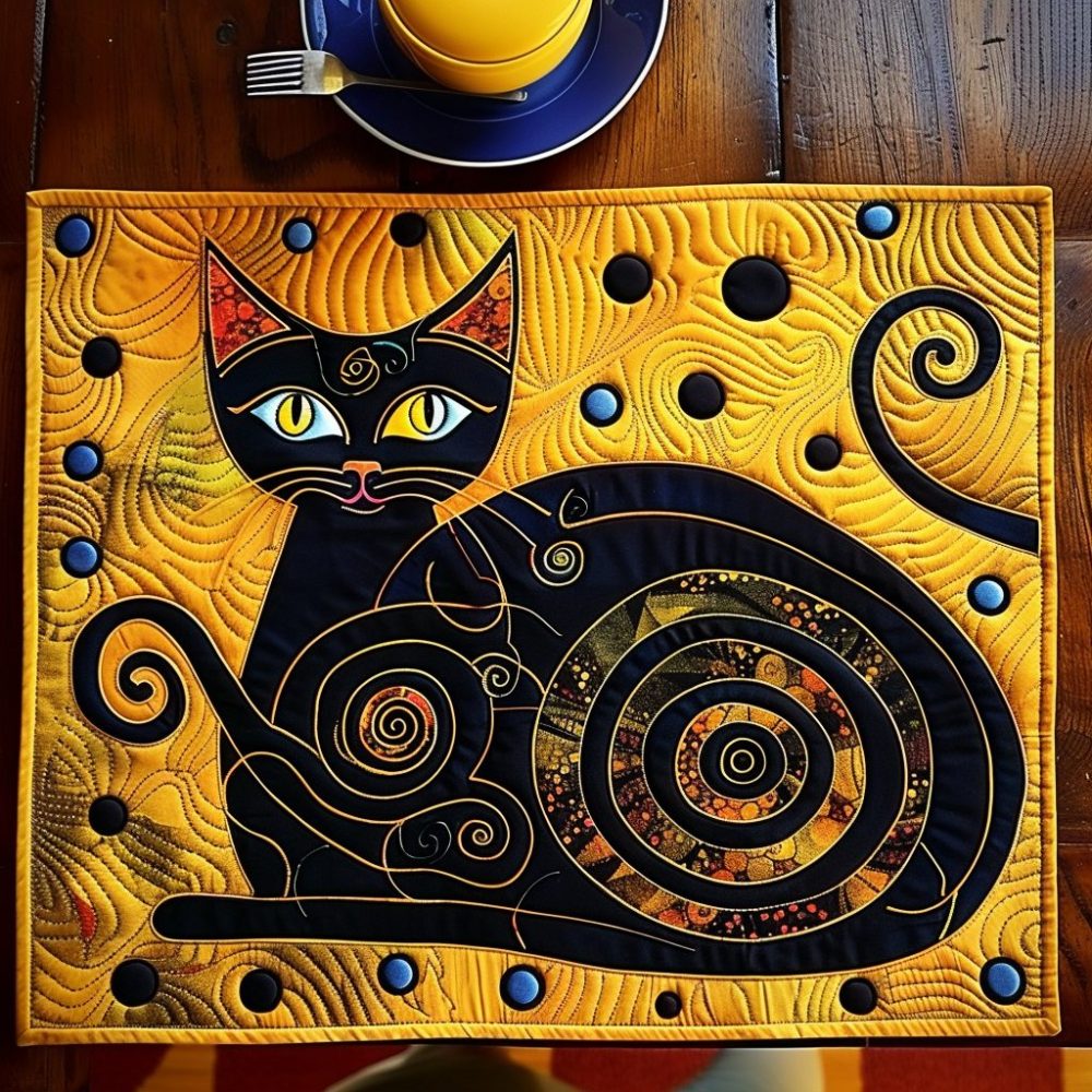 dreamy cat placemat,secret haven placemat,quilted cat mat,cotton padded placemat,washable table mat,whimsical kitchen decor,cat lover gift