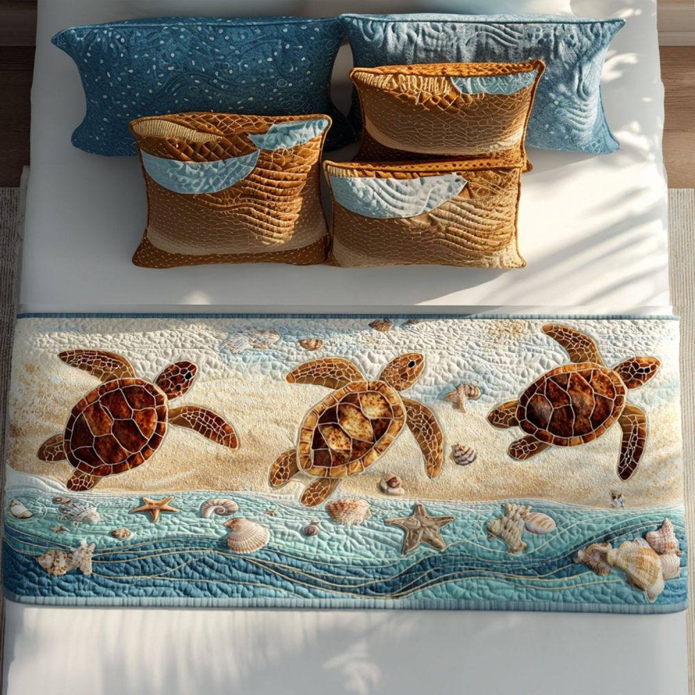 driftwood bed runner,nautical bed runner,quilted bed runner,coastal bedroom decor,cotton blend runner,queen king bed accessory,rustic bedding