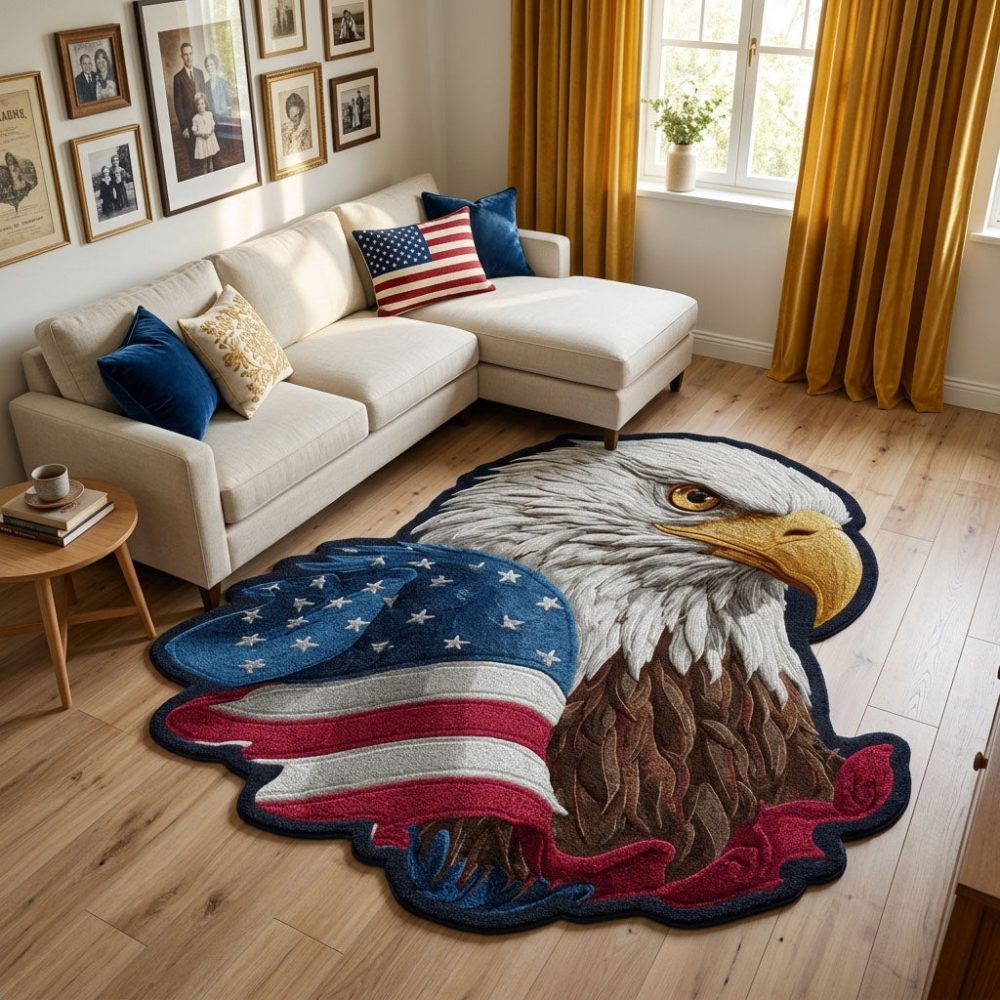 Eagle Pride Custom Shape Rug — Unique Cut-To-Shape Eagle Accent Rug For Entryway, Classroom Or Lodge, Non-Slip Backing & Durable Construction