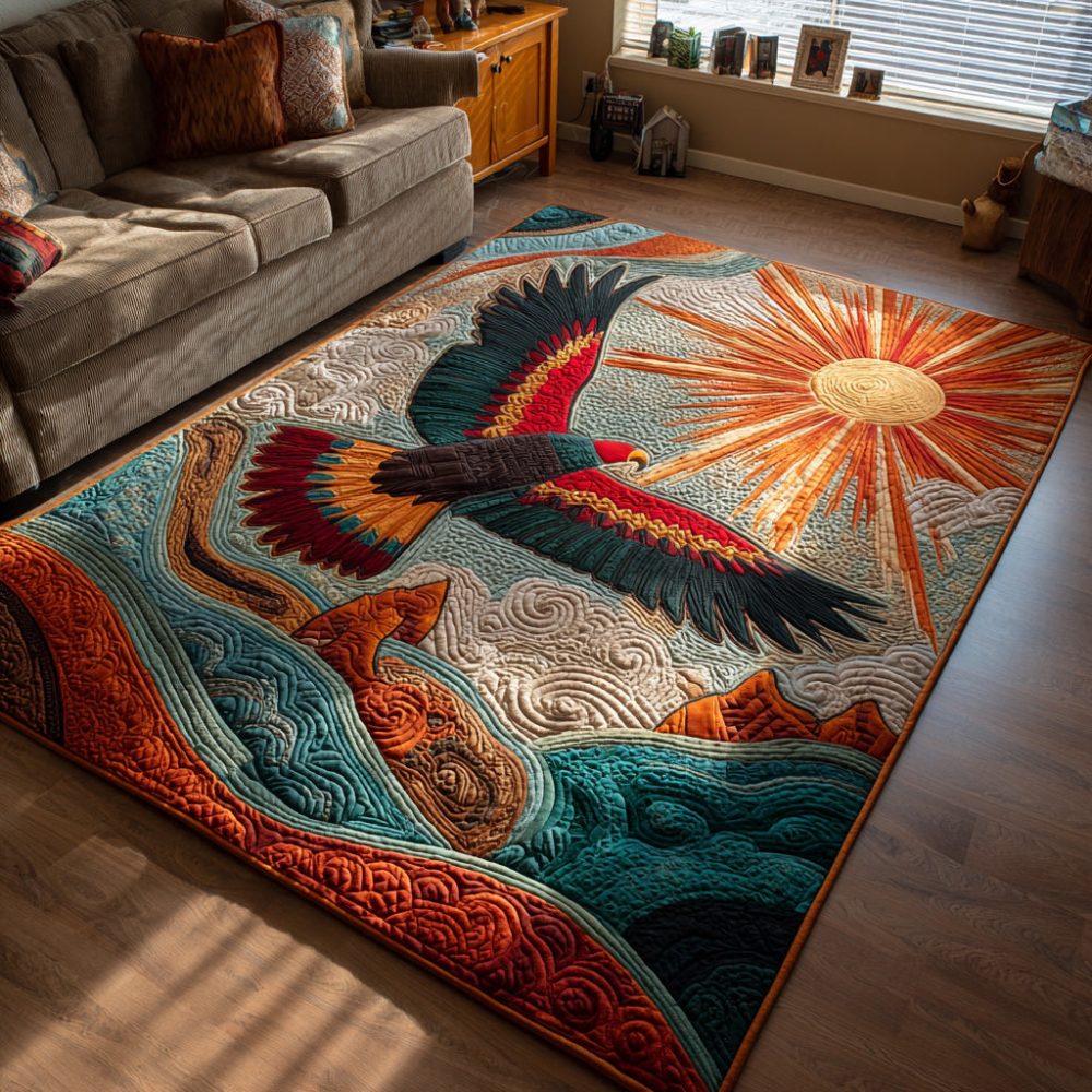 eagle sunrise rug,decorative area rug,warm tone rug,low-pile rug,fade resistant rug,rustic area rug,living room accent rug,cabin rug