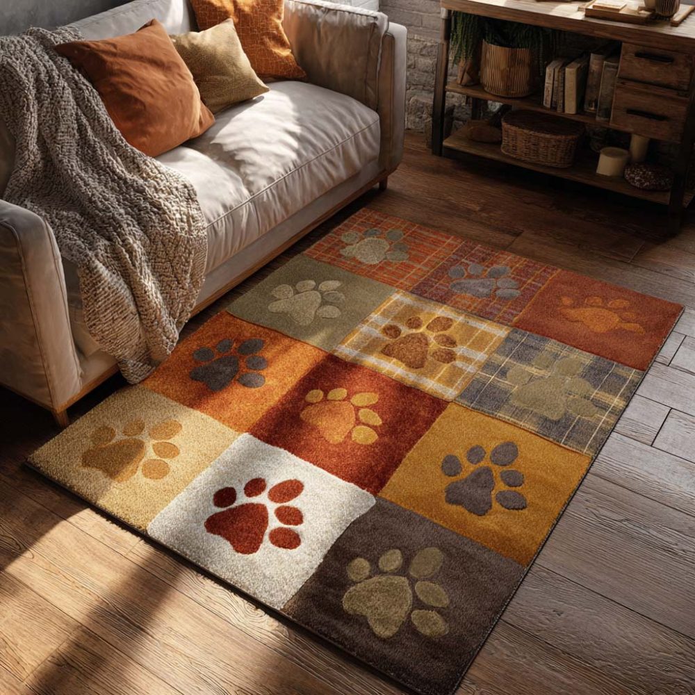 Earthy Forest Paw Kids Area Rug — Playful Forest Paw Print Rug For Playrooms & Nurseries, Soft, Durable, Non-Slip Backing & Easy-Clean Surface
