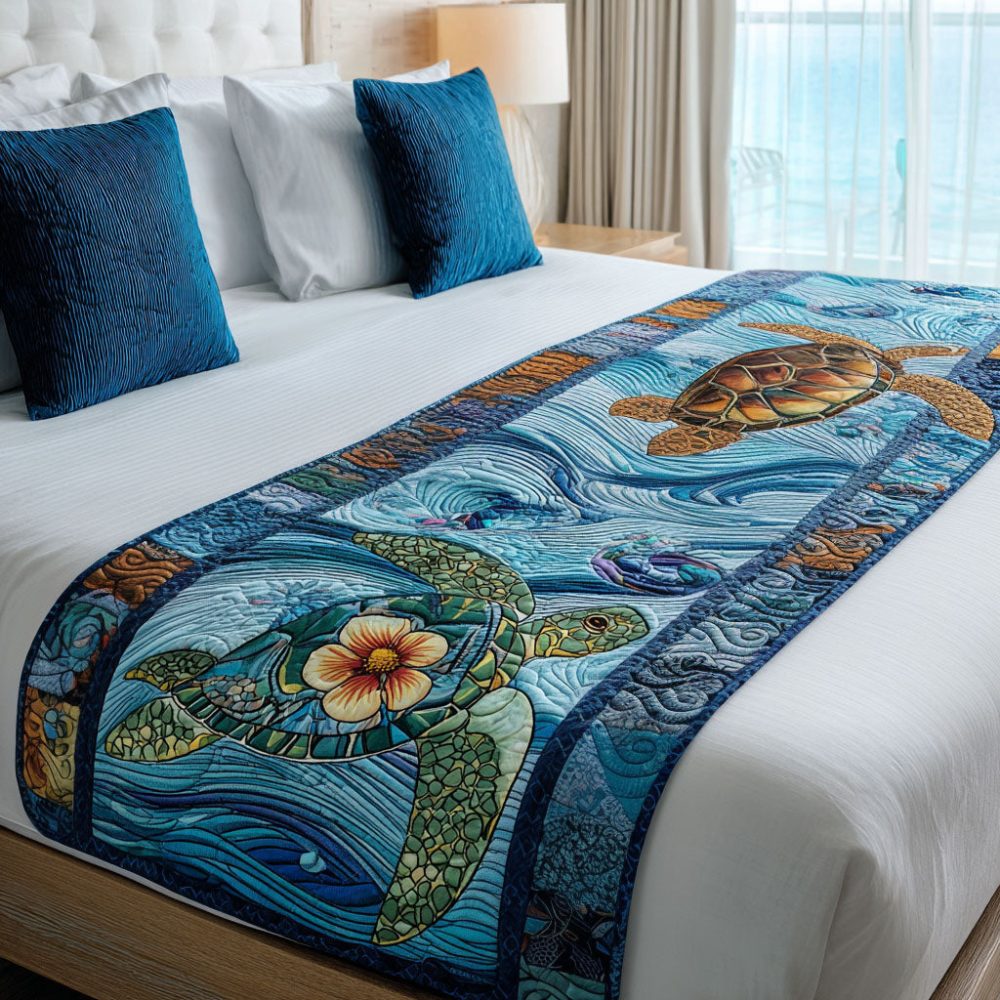 Earthy Tortoise Quilted Bed Runner – Terra Tones Bed Scarf With Organic Pattern, Durable Cotton Layer For Queen & King Beds