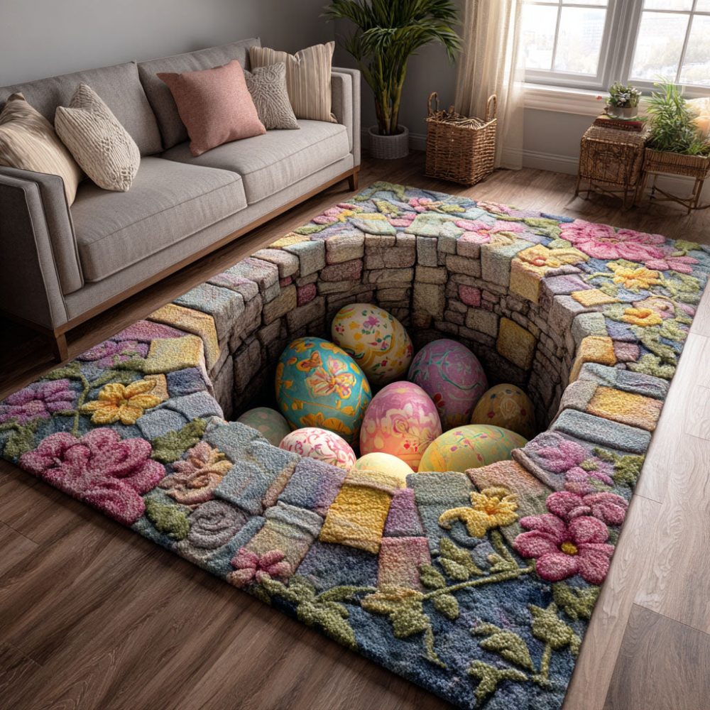 Easter egg rug, floral egg area rug, spring bloom rug, pastel area rug, seasonal decor rug, entryway rug, living room accent rug