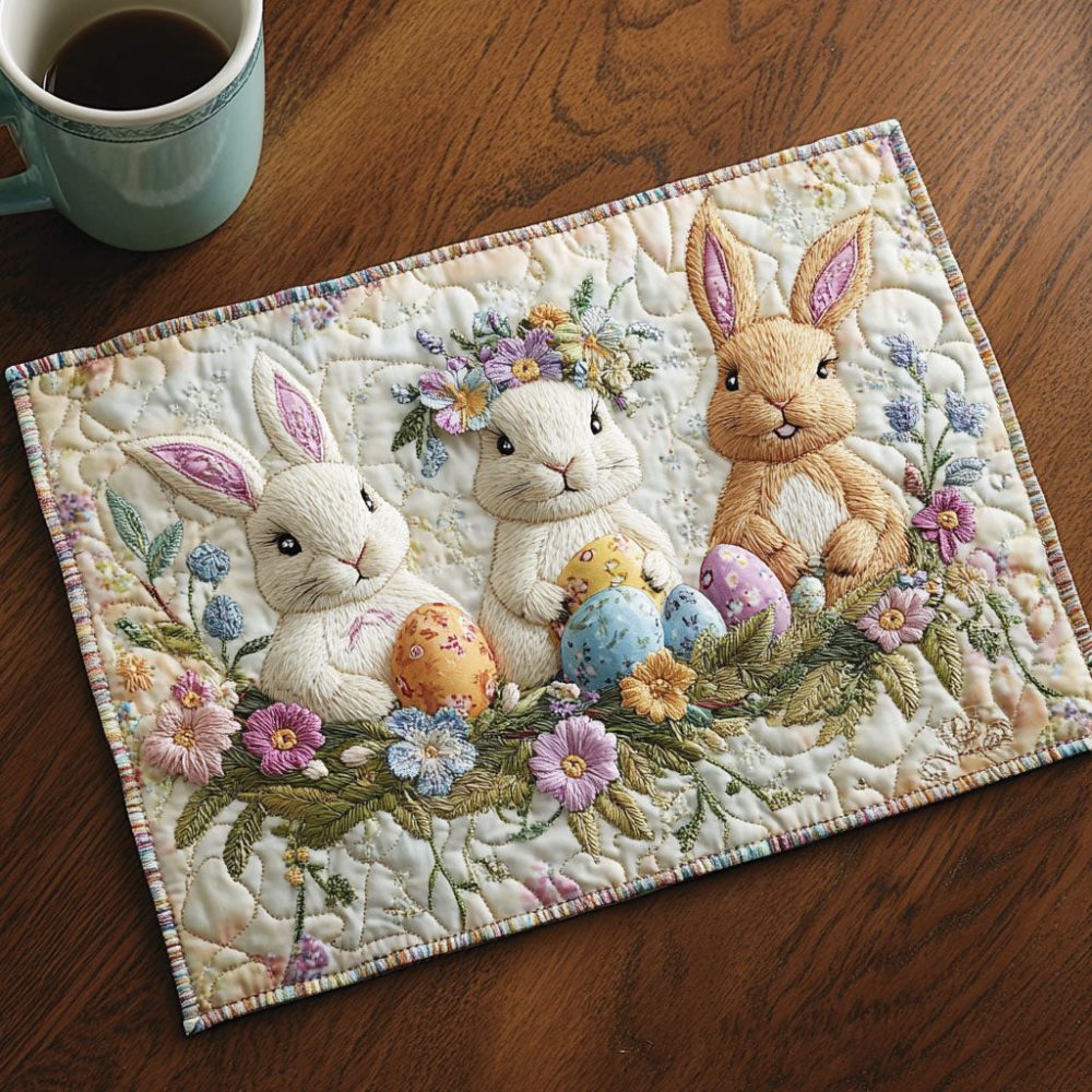 Easter placemat, quilted holiday placemat, pastel table mat, spring brunch decor, machine washable placemat, festive table accessories, holiday tableware