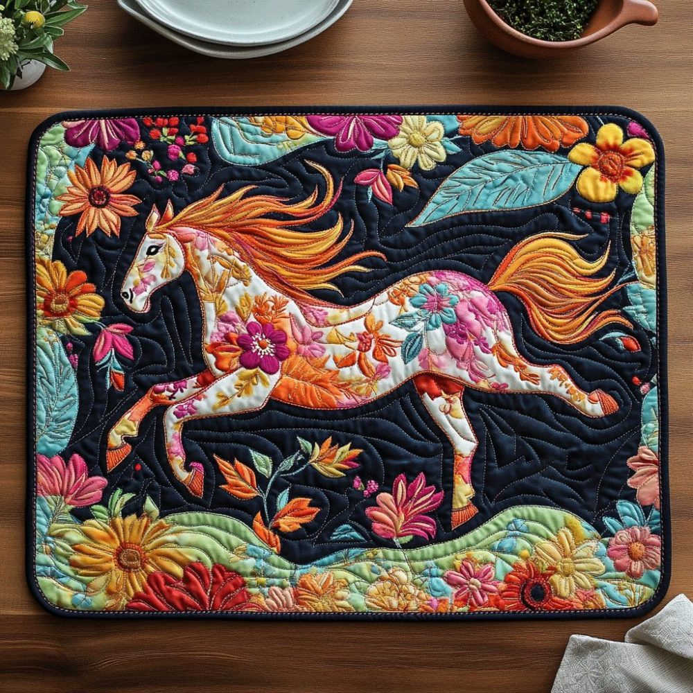 running horse placemat,premium quilted placemat,table runner alternative,padded heat resistant placemat,non-slip placemat,machine wash safe,equestrian décor