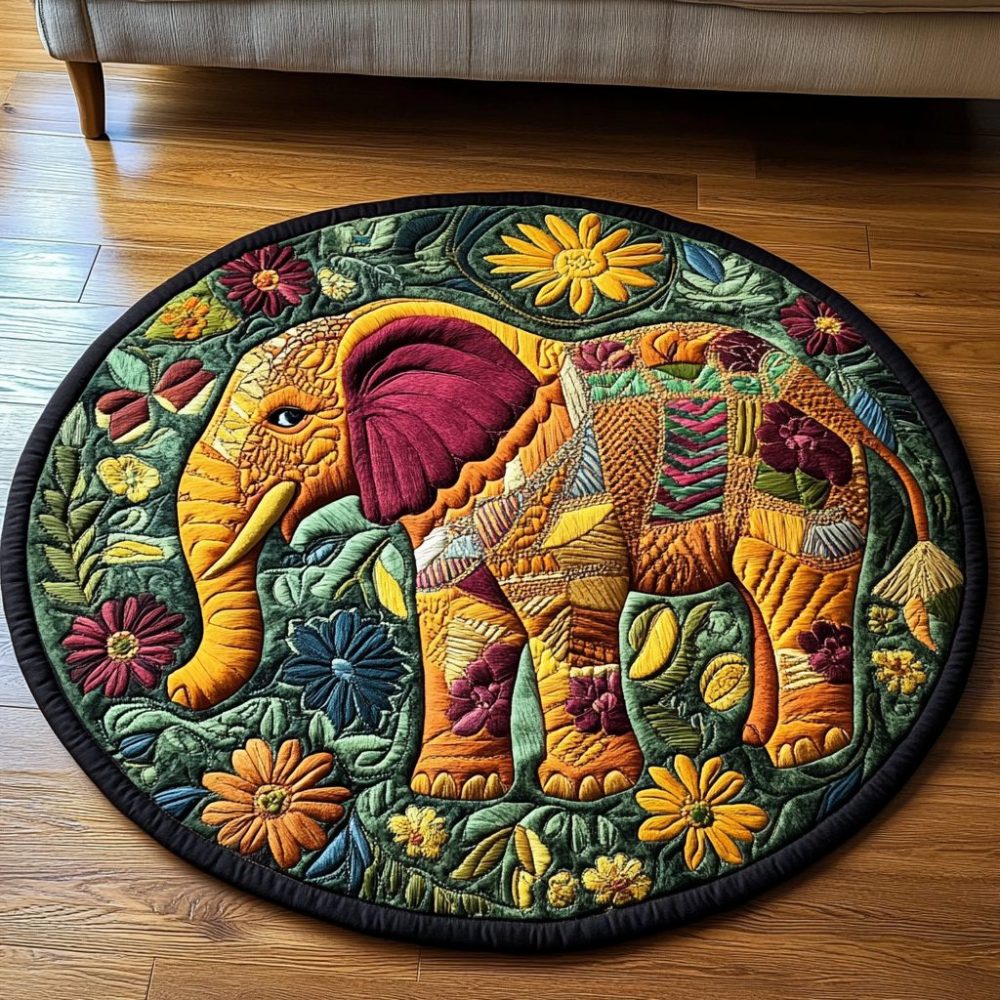 Elephant Echo Quilted Round Mat