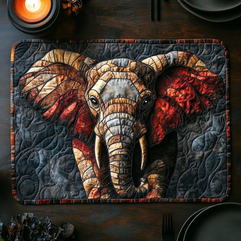 elephant placemat, animal print placemat, quilted table mat, safari table decor, washable placemat, boho dining accessories, decorative placemat