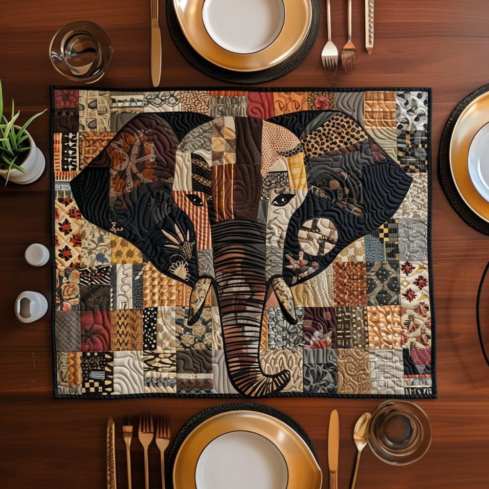 elephant placemat,elephant mirage placemat,quilted table mat,global inspired placemat,machine washable table mat,boho table decor,durable dining placemat,heat safe