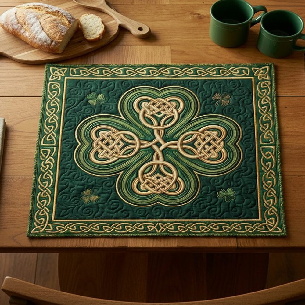 Celtic placemat, emerald placemat, quilted table mat, knotwork decor, cotton placemat, boho table accent, washable placemat, gift