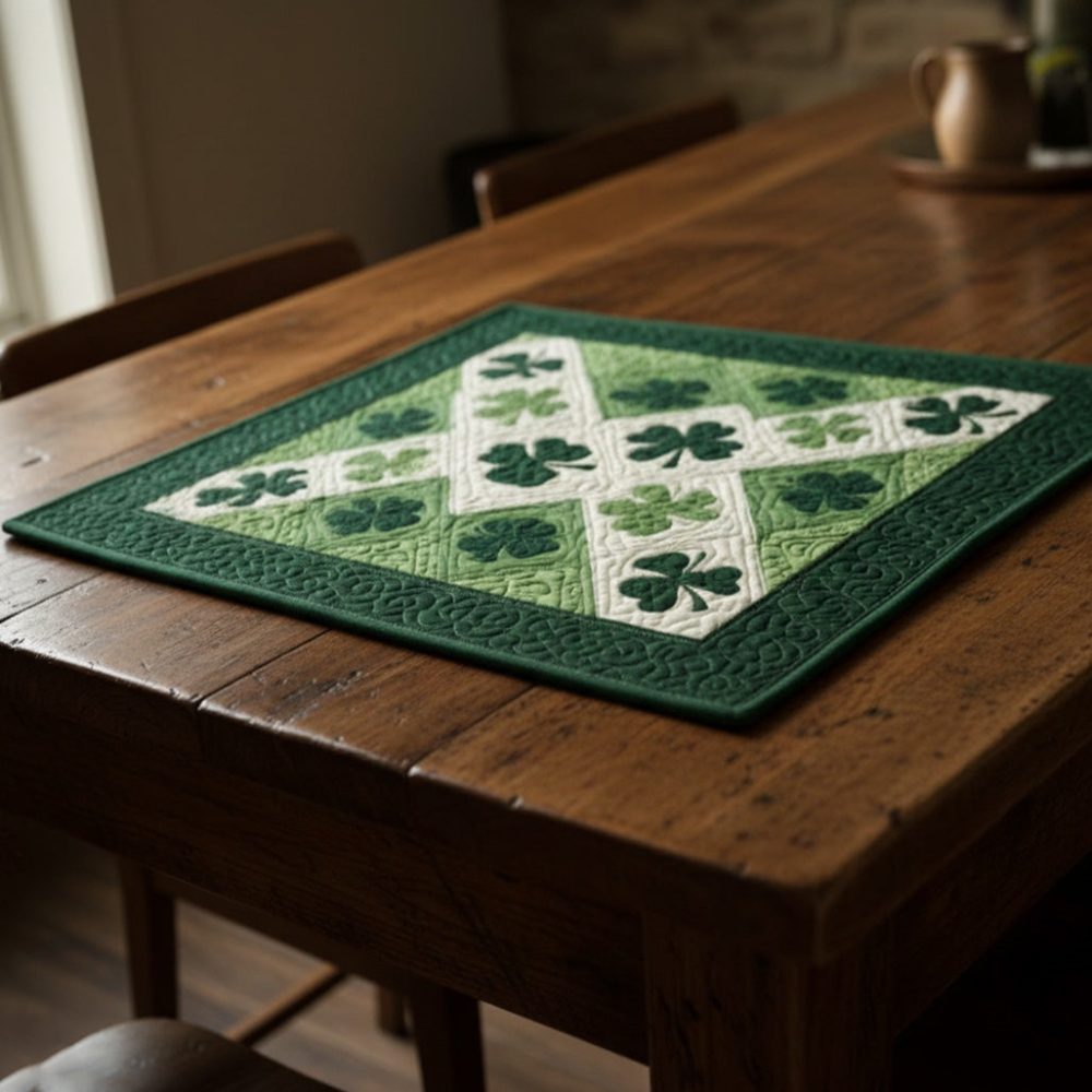 emerald placemat,clover quilted placemat,green table mat,St. Patrick’s table decor,cotton quilted place mat,machine washable placemat,elegant table accessory