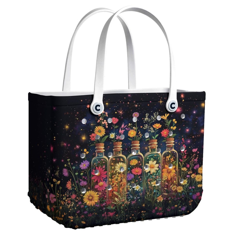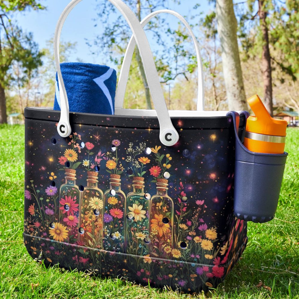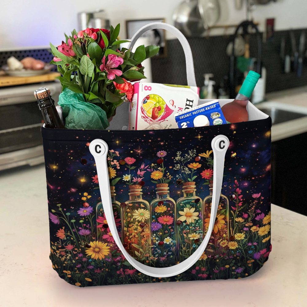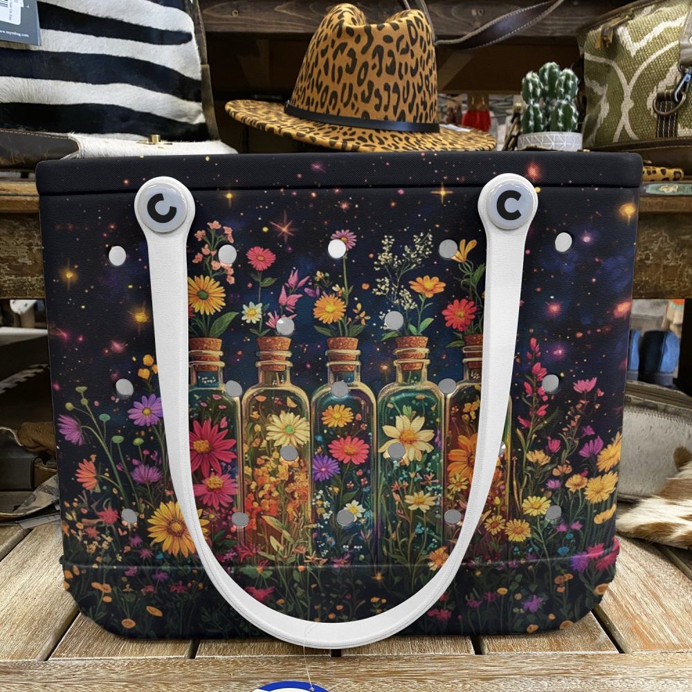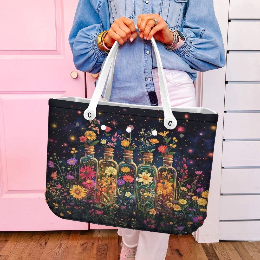 Be the first to review “Enchanting Floral Tote Bag With Cosmic Night Sky Design – Perfect For Stylish Outings”
