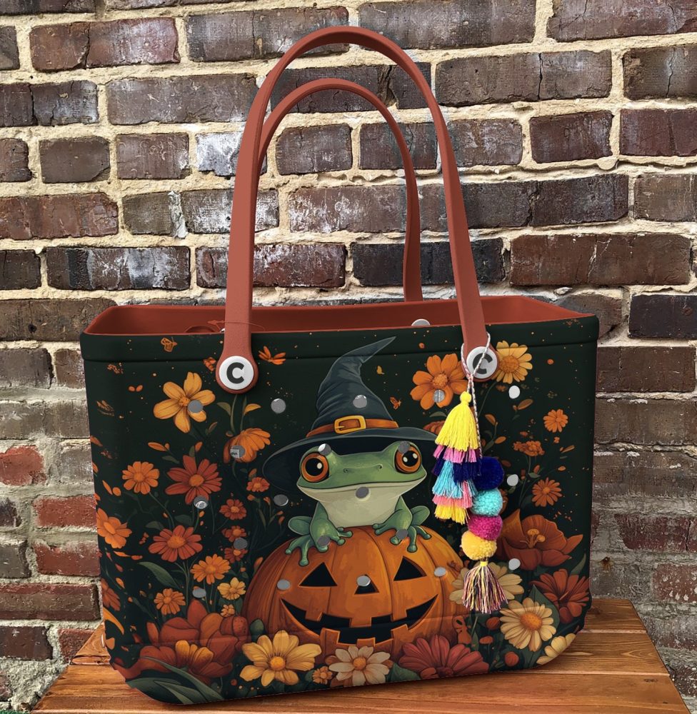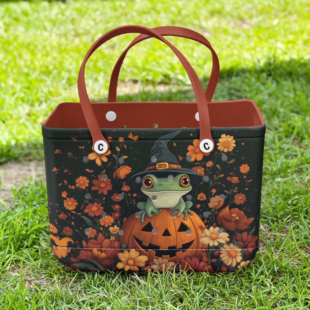 Be the first to review “Enchanting Frog Witch Halloween Tote Bag – Cute Pumpkin & Flower Design, Perfect For Spooky Season Shopping”