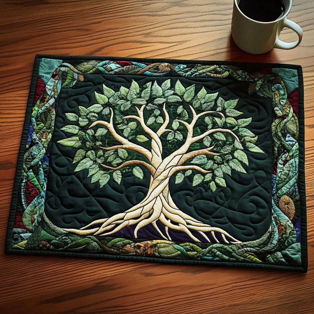 Enhance your dining setting with the Entwined Green Tree quilted placemat. Subtle botanical tones and intricate quilting create an elegant, nature-inspired look while providing padded protection against heat and table wear. Ideal for casual dinners, garden parties, or nature-themed tablescapes. Designed for practical living with easy machine washing and low-maintenance care.