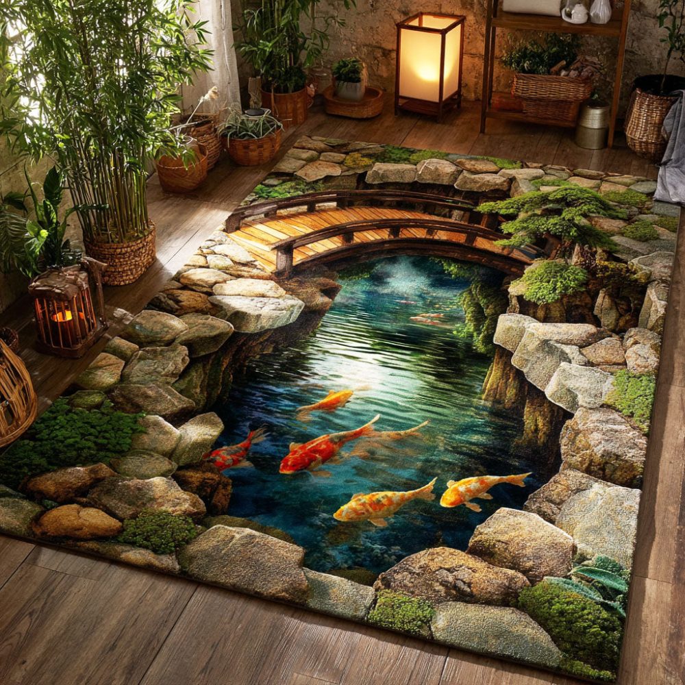 koi rug,watercolor area rug,serene rug,zen rug,bedroom rug,bathroom rug,fish motif rug
