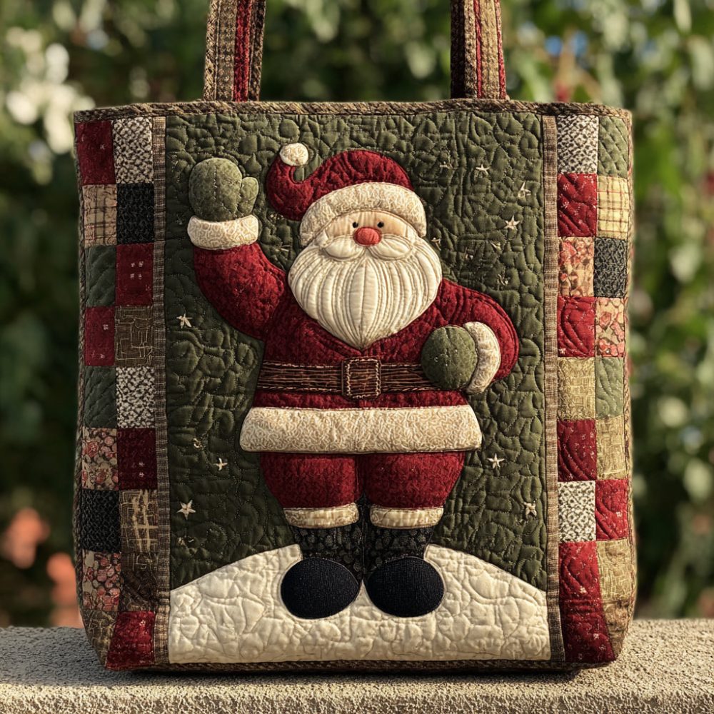 Evergreen Santa Claus Quilted Tote Bag