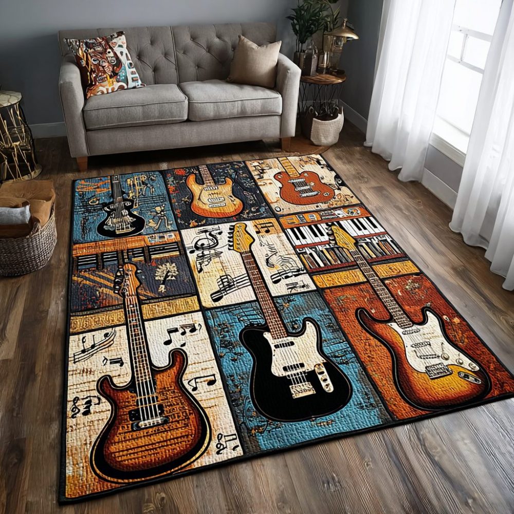 guitar area rug,music room rug,plush area rug,living room rug,studio rug,bedroom floor mat,low pile rug,decorative guitar rug