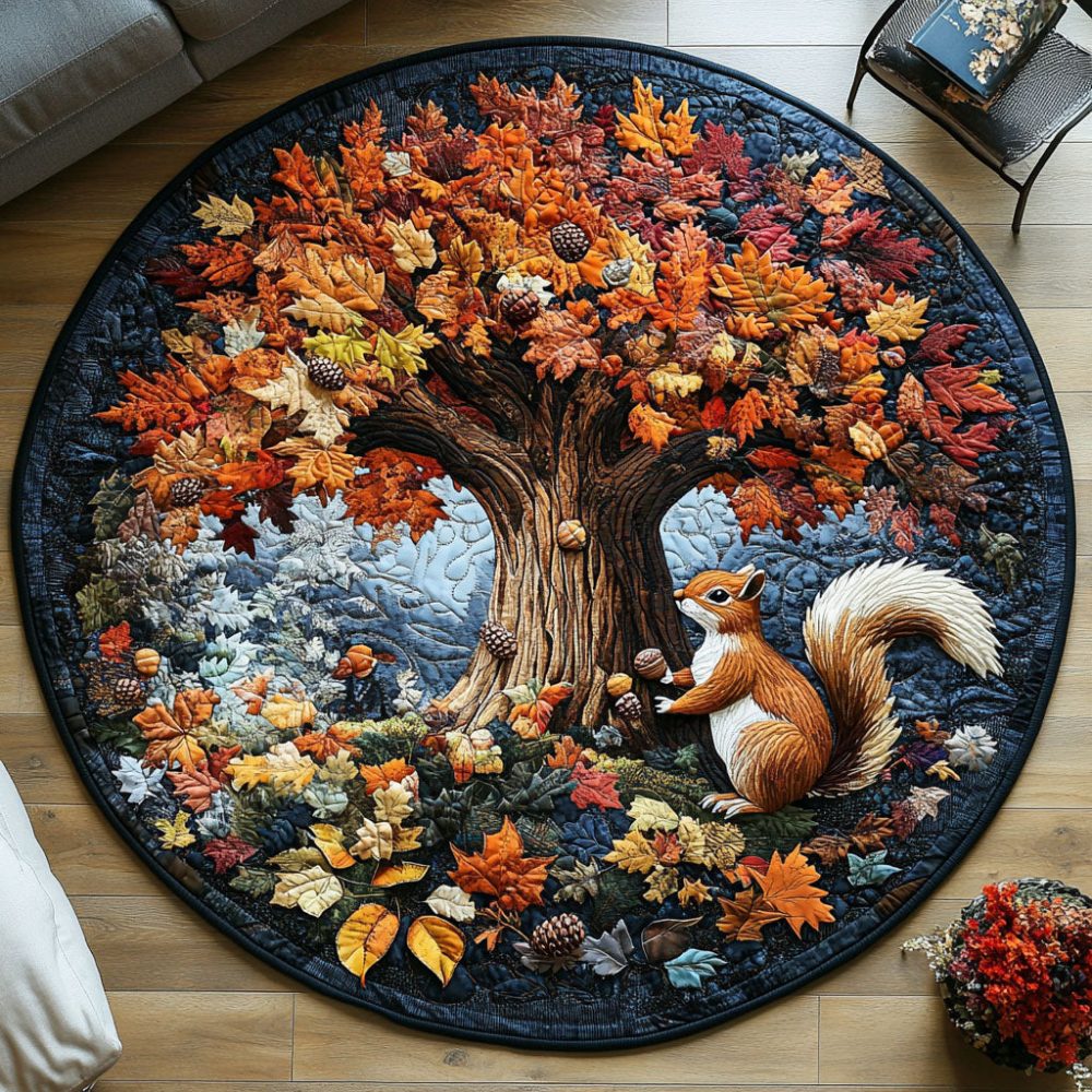 Fall Squirrel Vibes Quilted Round Mat