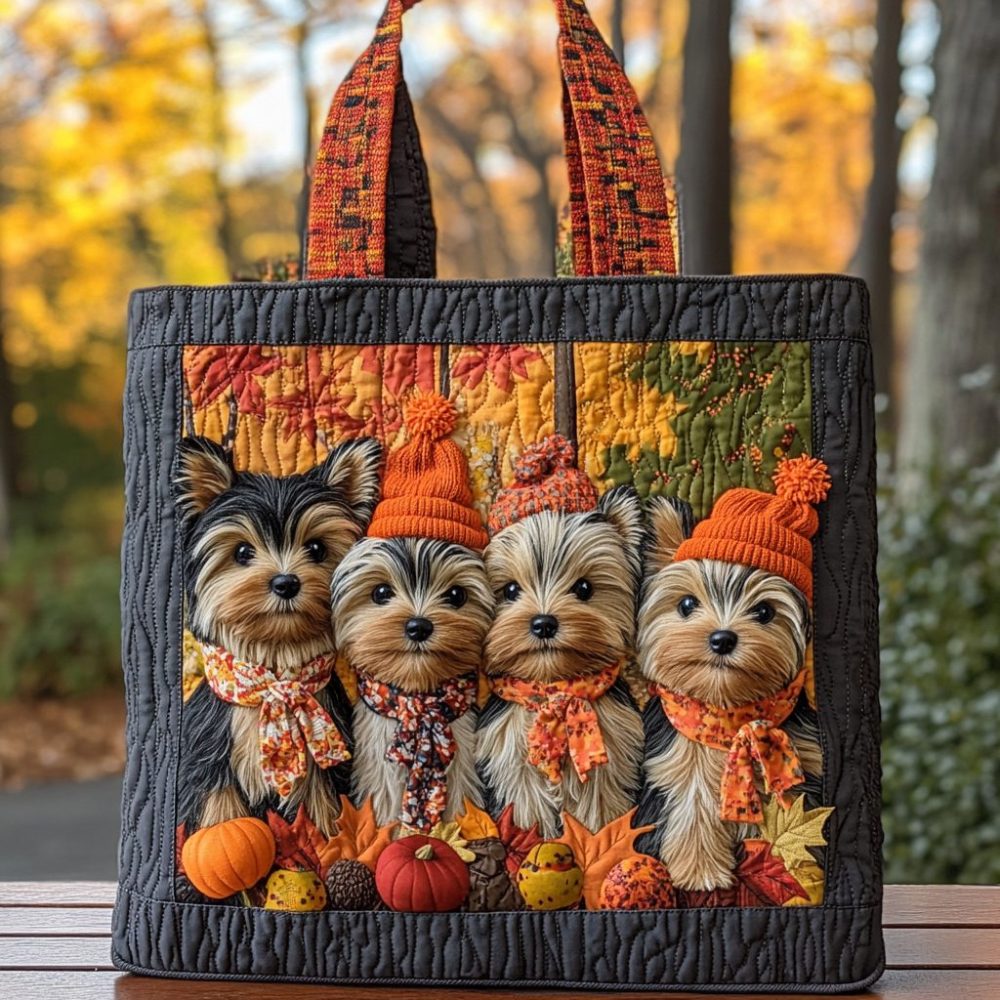 Falling For Yorkie Quilted Tote Bag