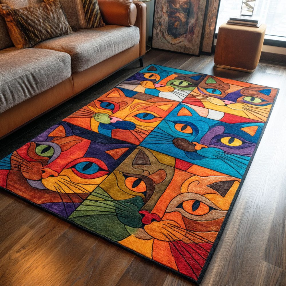 Fancy Feline Chic Area Rug – Playful Cat Silhouette Design, Low-Pile Soft Floor Rug For Living Room, Bedroom & Pet-Friendly Spaces