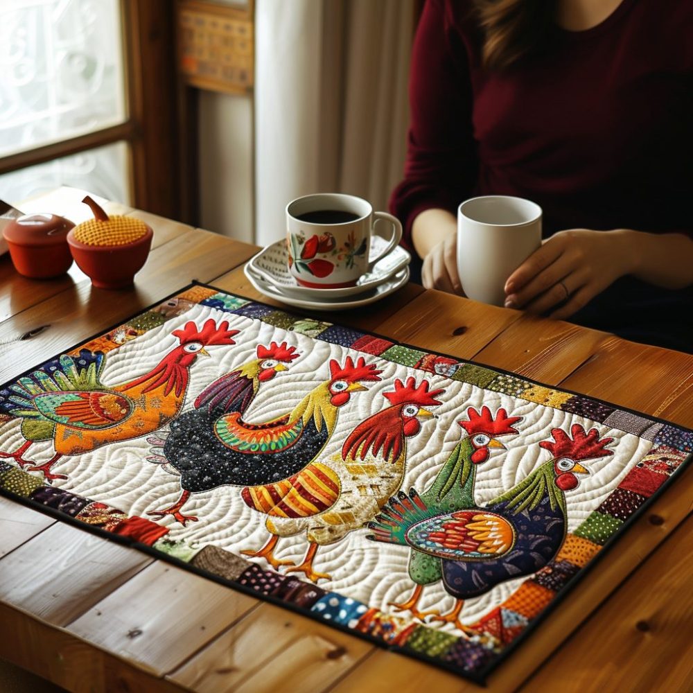 farmhouse placemat,chicken placemat,quilted placemat,country kitchen decor,stain-resistant placemat,reversible placemat,cotton-blend placemat