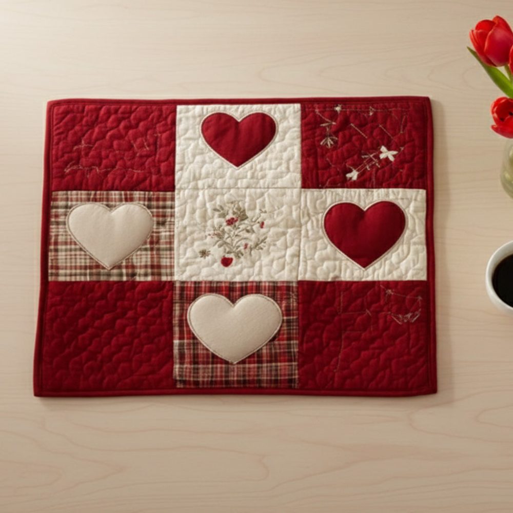 farmhouse hearts placemat,quilted placemat,country table mat,heart placemat,kitchen decor,quilted table protector,machine washable,cozy dining