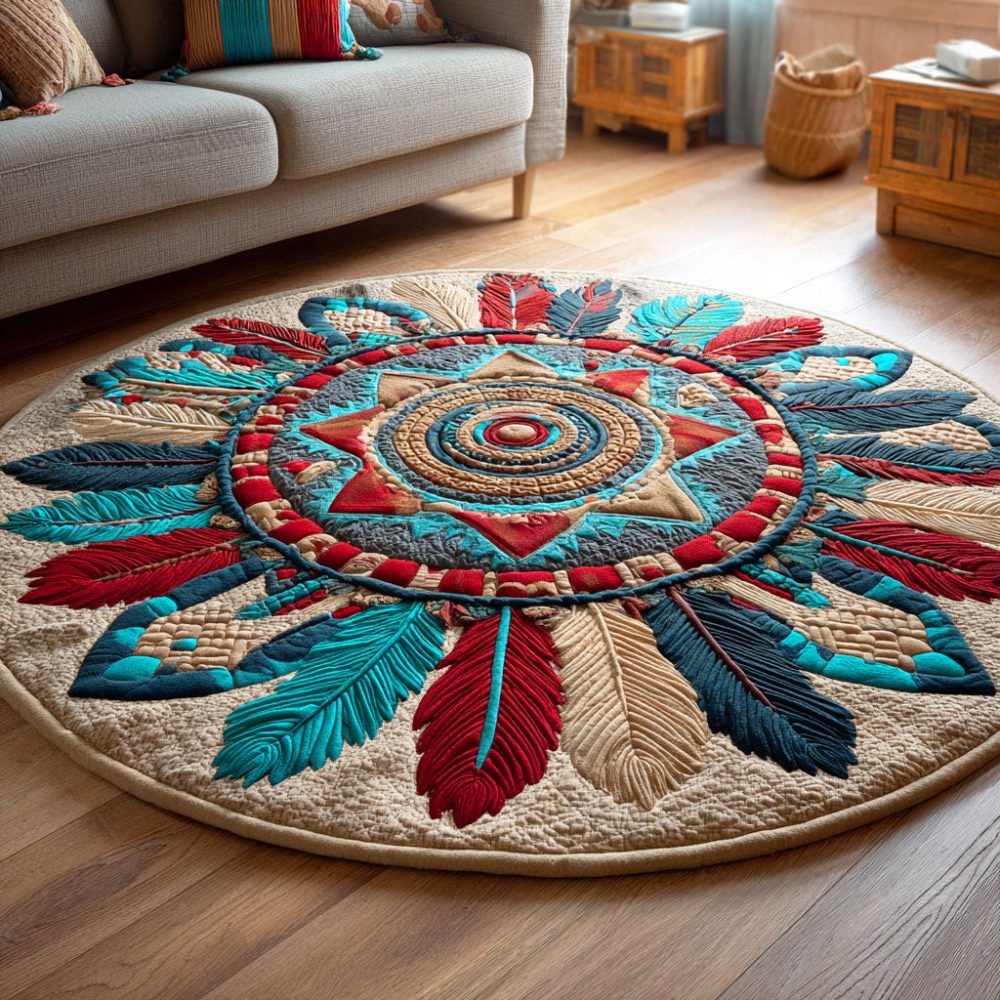 Feather Circle Quilted Round Mat