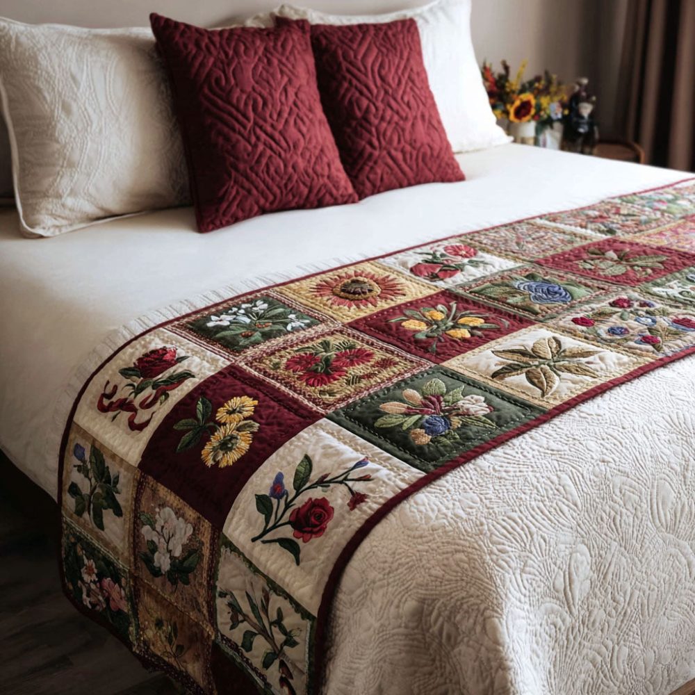 fern bed runner, fern motif bed scarf, quilted bed runner, nature-inspired bedding, fernlight morning, soft quilting, machine washable, bedroom refresh