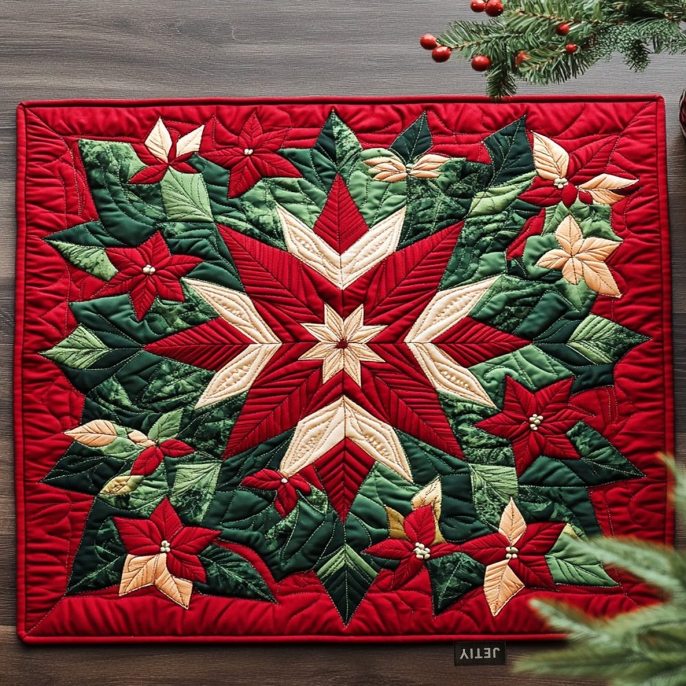 Festive Flora placemat, Christmas floral placemat, quilted holiday placemat, machine washable placemat, cotton blend table mat, festive table decor, holiday dining accessory