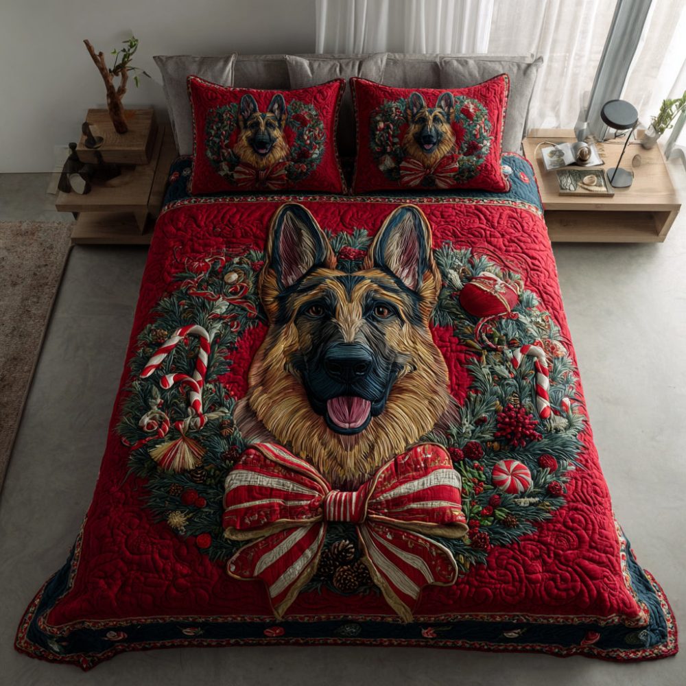 Festive German Shepherd 3-Piece Quilted Bedding Set