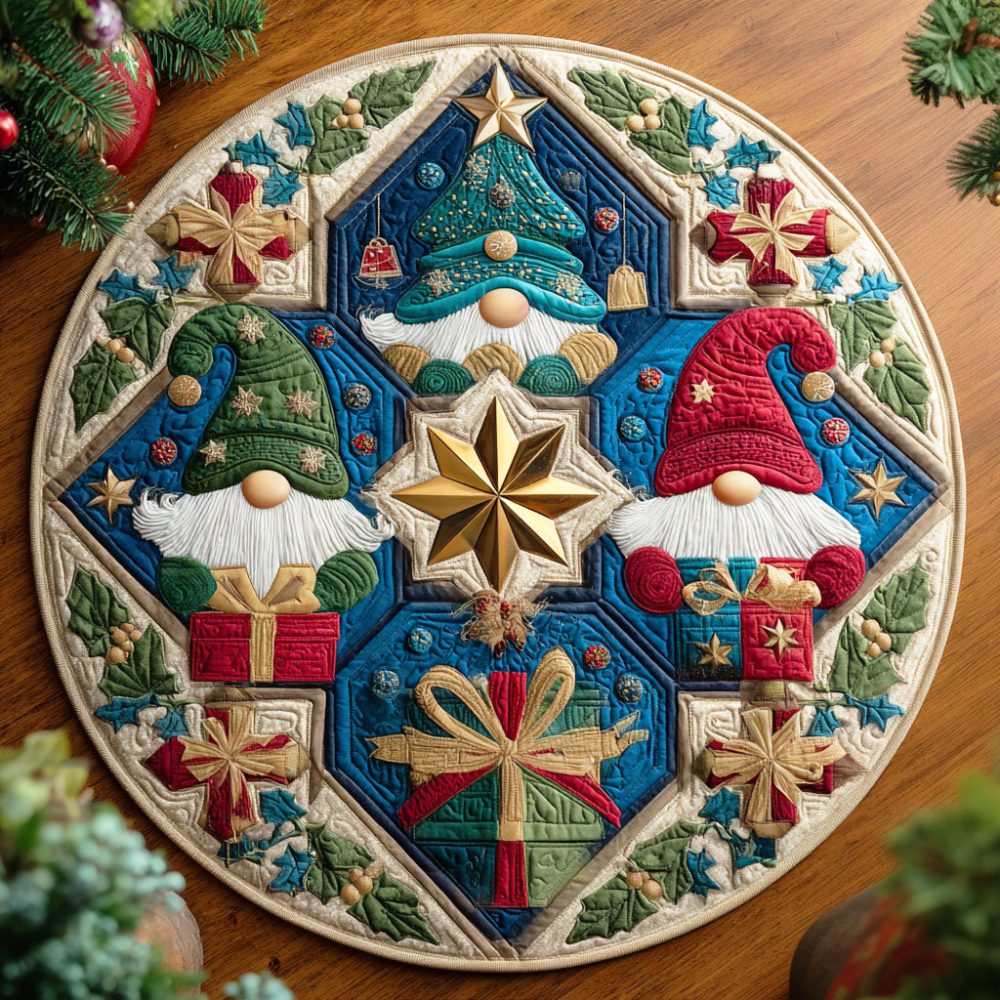 Festive Gnome Quilted Round Mat